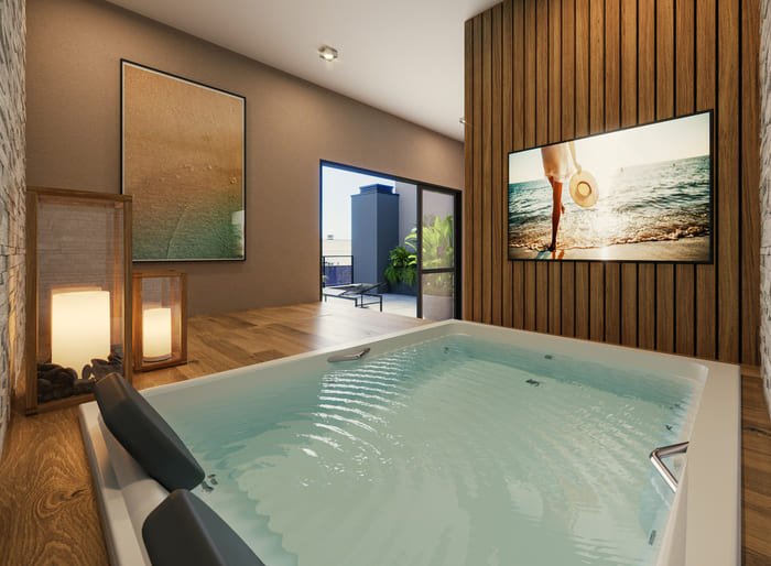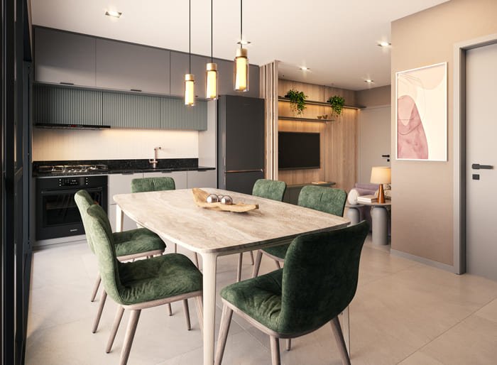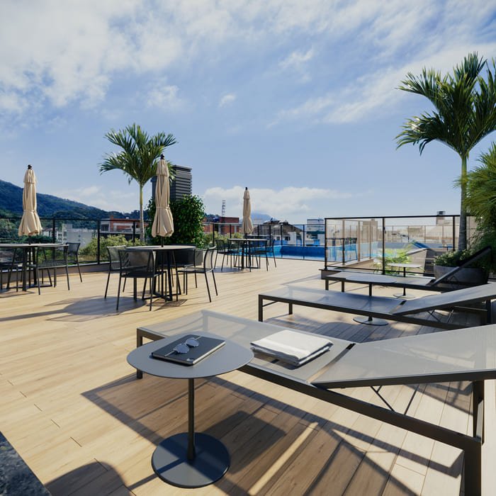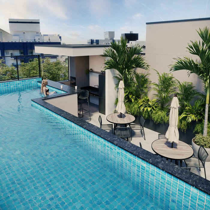 Com 65 apartamentos de 1 ou 2 suítes, plantas entre 45 m² e 70 m², o empreendimento foi projetado para quem valoriza o equilíbrio entre praticidade, bem-estar e exclusividade. Cada unidade conta com varanda gourmet, porcelanato em todos os ambientes, infraestrutura para ar-condicionado e 1 ou 2 vagas de garagem.