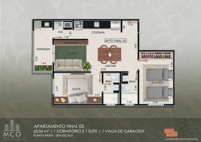 • Tamanho 57 m2